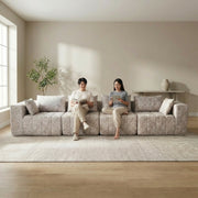 A boneless modular sectional sofa that ships in a box and sets up in minutes — no frame, no assembly, just deep, sinking comfort. This cloud couch style sofa comes in 3-seater and 4-seater configurations, built from high-density foam and wrapped in durable upholstery that holds its shape without any internal structure.